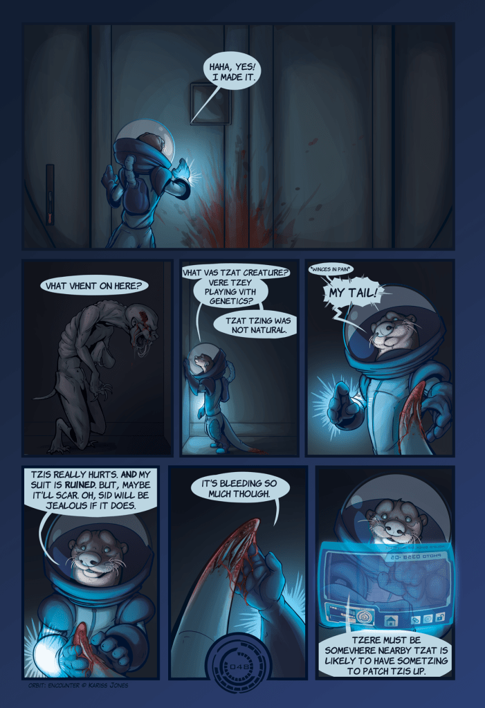 This 12 panel page was a mission. I tried to make it easy to read direction visually with the amount of light in each panel being loosely set to diagonals. My favorite panel is the second one in on the second row. Looks like Oscar is swimming, very majestic :3